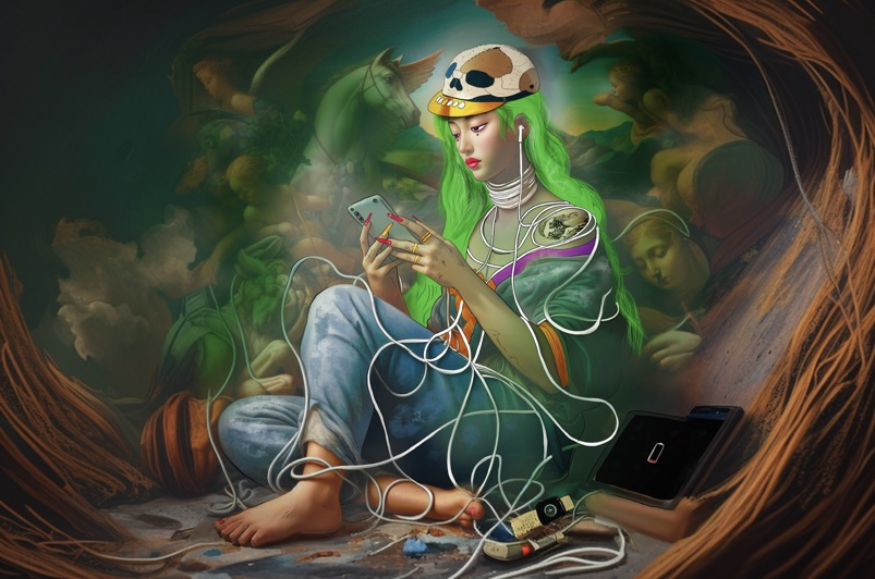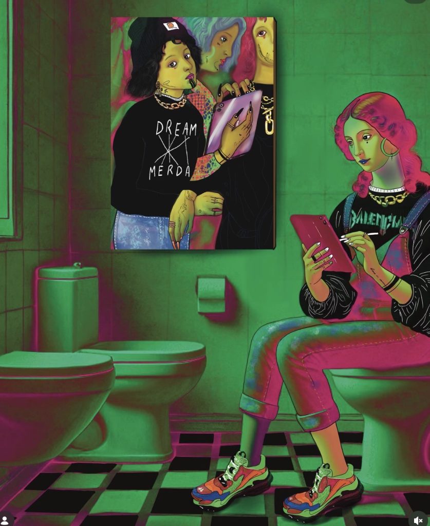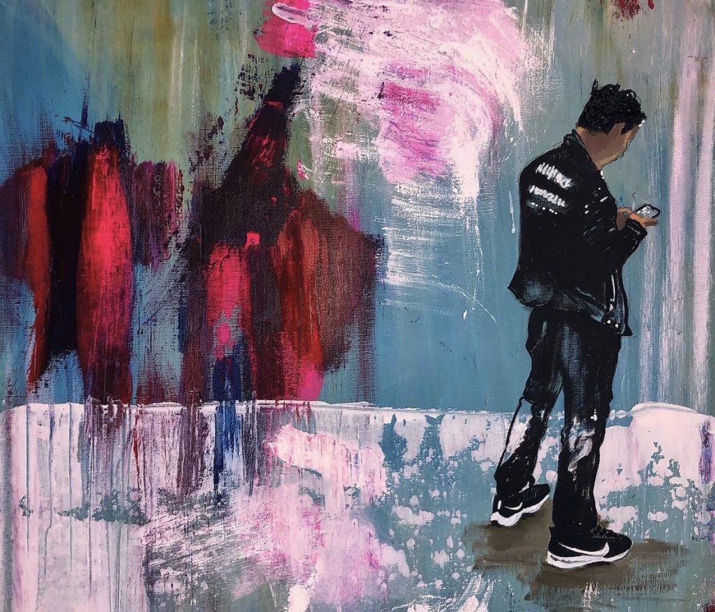 PAINT-DIGITAL MI, 2020 Acrylic on canvas 50×50×4 cm GE, 2017 Acrylic on canvas 150X70 cm PUNK RENAISSENSE DIGITAL PORTRAITS